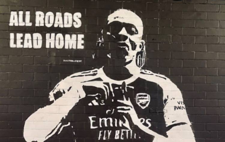 随后在周三深夜,由艺术家“北班克西”创作的埃泽壁画悄然出现在酋长球场外的隧道墙壁上,画面中身着阿森纳球衣的埃泽正在做出其标志性庆祝动作。